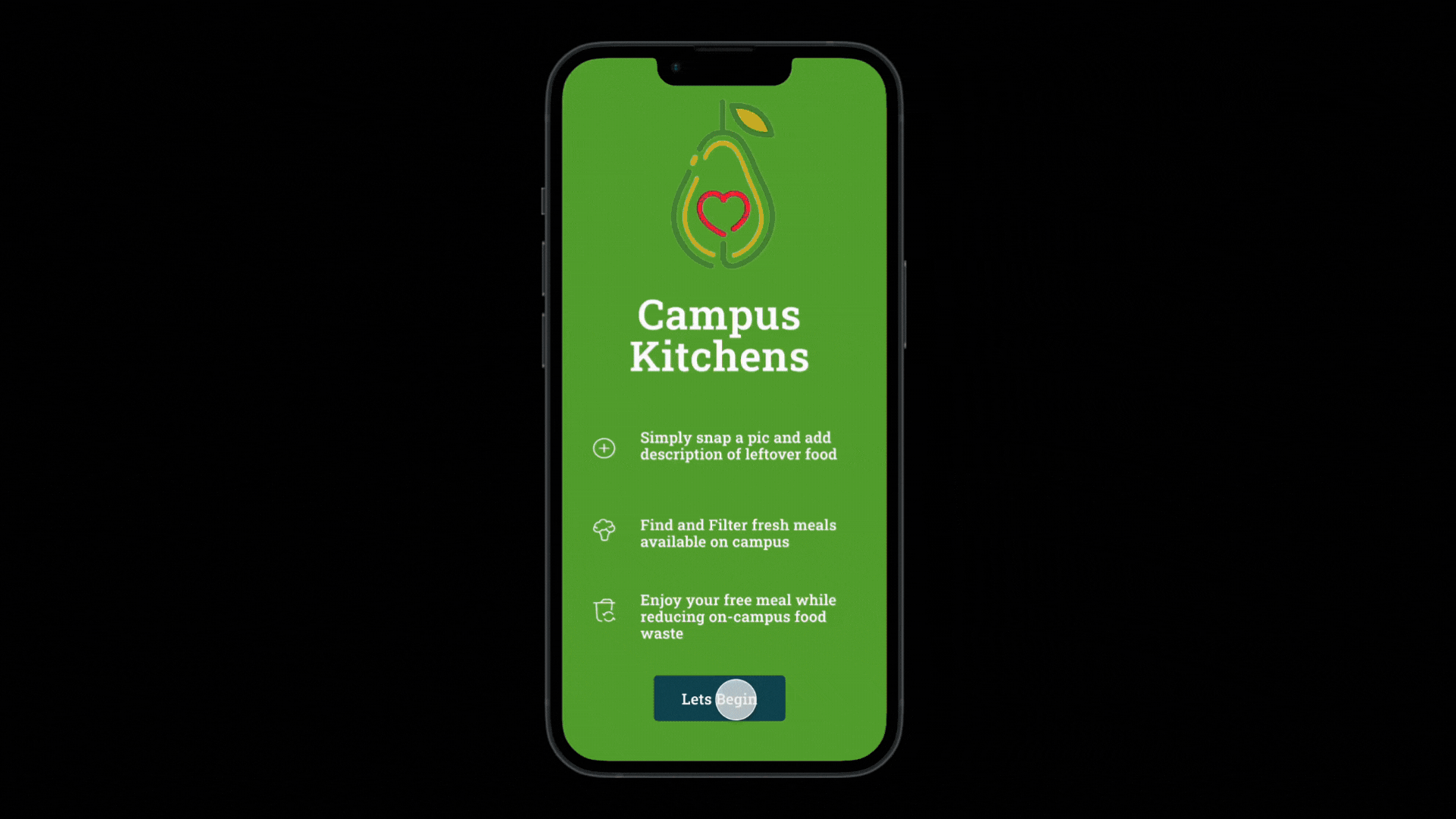 Campus Kitchens is an application which allows users to conveniently find leftover foods all over campus to help reduce food waste and help students navigate rising meal costs.